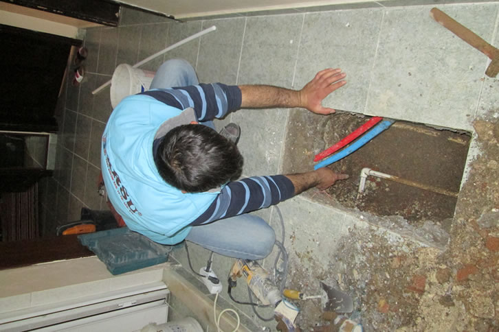 Su tesisat arızalarını kameralı su kaçak tespit kontrol cihazlarıyla yerini tespit edip onarımı ile birlikte yapıyoruz. Su kaçağı tespiti uzman ekiplerimiz tarafından bulunarak, tadilatı iki yıl garantili bir şekilde yapılır. Bilinmeyen su sızıntıları alt kat komşunuzun tavanında damlaya sebep olur. Su kaçakları üst kat komşunuzun dairesinde herhangi bir şekilde belirti göstermeyebilir. Bunun nedeni su tesisat boruları sıvanın alt tabakasından geçmektedir. Sıvanın üst katında suyu büyük oranda engelleyen izalasyon malzemesi vardır. Böylece tesisat borunuzdaki su kaçağı zemine değil de alt katın tavanından damlaya başlar. Su sızıntısı arada bir keslip sonra tekrar başlıyorsa, atık su gider borularında sorun olabilir fakat bu kesin bir yargı değildir. Su kaçağı sürekli bir damlamaya sebep oluyorsa genel olarak temiz su kaçağı var demektir. KIRMADAN cihazla su kaçağı bulma, su kaçağı tespiti, su sızıntısı bulma, su tesisat arıza bulma ve su tesisat kaçağı hizmetini kırmadan kameralı sistemler ile veriyoruz. Su tesisat sektöründe gelinen en son teknolojiyi kullanan firmamız avrupadan ithal makineler ile çalışmaktadır. Bulunmayan su sızıntısı kalmasın. Tüm su tamirat ihtiyaçlarınızda yanınızdayız.